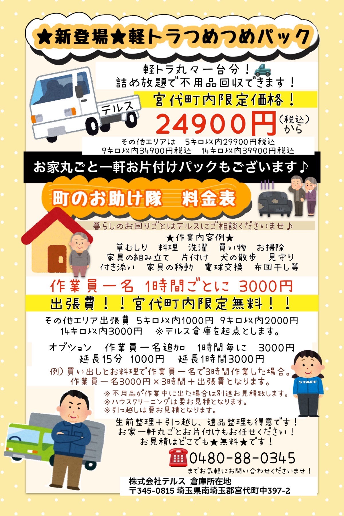 作業員1名で行った場合。(宮代町内) 24900円(税込)